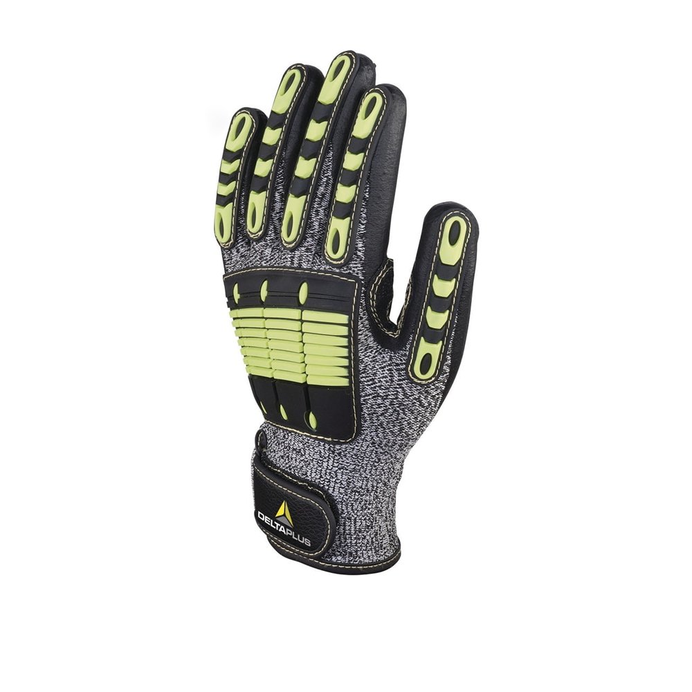 El guante Delta Plus Anti Impact Nocut VV910JA está diseñado para brindar protección mecánica avanzada, combinando resistencia al corte de nivel alto con refuerzos anti-impacto en el dorso. Es ideal para aplicaciones industriales donde el usuario se expone a riesgos por objetos cortantes, golpes o abrasión. Su recubrimiento de nitrilo arenoso en la palma proporciona excelente agarre incluso en condiciones de humedad o presencia de aceites.